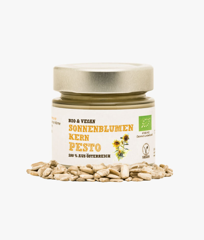 For our organic sunflower pesto we process only the best raw materials 100% from austria. You can also taste it, pure enjoyment needs quality from the start to the end product. Enjoy this pesto with noodles, on your bread or vegetable sticks. The fresh taste will definitely surprise you!