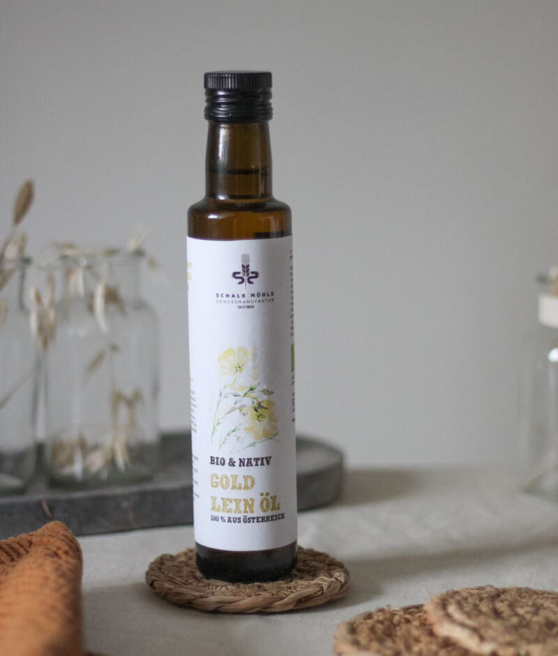 Native Leinöle gibt es mittlerweile viele. Das Leinöl aus Goldleinsaat ist aber etwas Besonderes. Der Geruch des Öls erinnert angenehm an frisches Getreide. Im Geschmack ist es eher unauffällig und zurückhaltend, ohne jegliche Bitterkeit oder Fehlnoten. Kompliment!