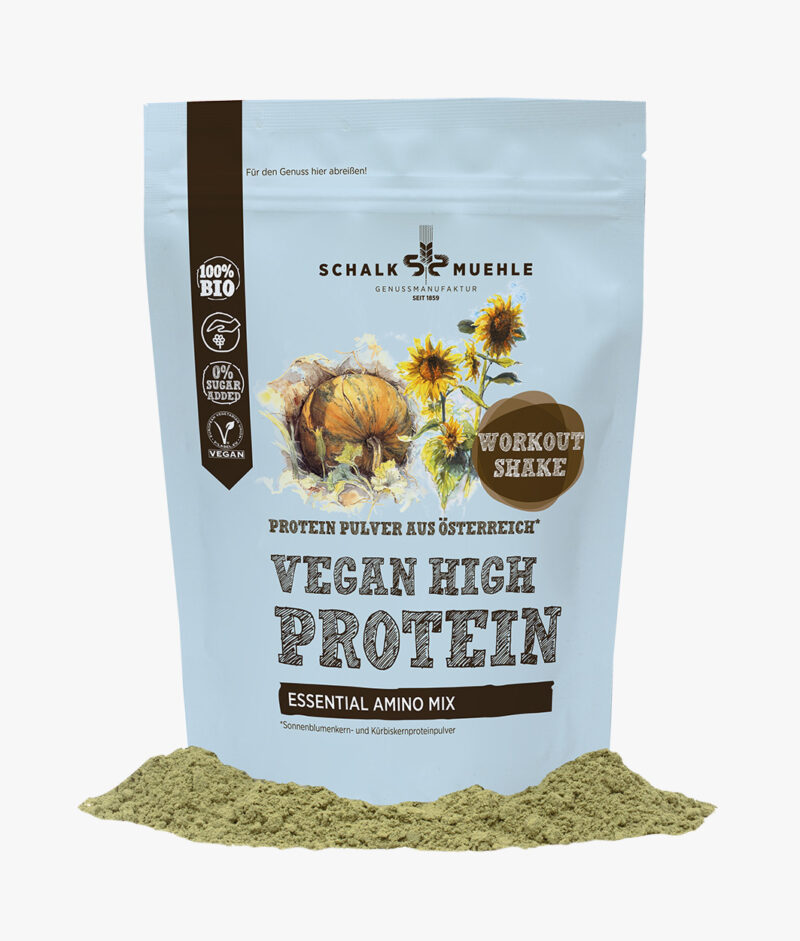 Diese natürliche Pflanzenpower aus den Proteinquellen Kürbis- und Sonnenblumenkern ist nicht von dieser Welt. Die Mischung allerfeinster österreichischer Pulver versorgen deinen Körper mit allen lebensnotwendigen Aminosäuren – ohja daher kommt seine besondere Bezeichnung. Bereits eine Portionsgröße von 30 g deckt 29% deines Tagesbedarfs an essentiellen Aminosäuren ab. Also wir sind ganz hin und weg. Hinzukommt der fantastische Proteingehalt von fast 60%. Perfekt vor oder nach einem anstrengenden Workout, als schneller Shake für zwischendurch oder als Verfeinerung deiner Speisen – mit diesem pflanzlichen Mix kommst du ganz einfach auf deinen täglichen Proteinbedarf. Ideal für gesundheitsbewusste Vegetarier:innen und Veganer:innen.