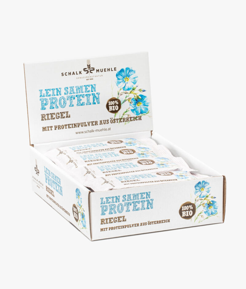 Echter Geschmack mit echten Zutaten und das auch noch in Bio Qualität! Geht nicht? Geht doch! Und zwar vereint in unserem Bio Leinsamen Protein Riegel. Mit 13% Eiweißgehalt schafft es der kleine Snack sicher in deine sportliche Ernährung. Passt ideal zu Wandertouren, Bike-Ausflügen, zum Snowboarden und Skifahren. Gib dir den natürlichen Kick.