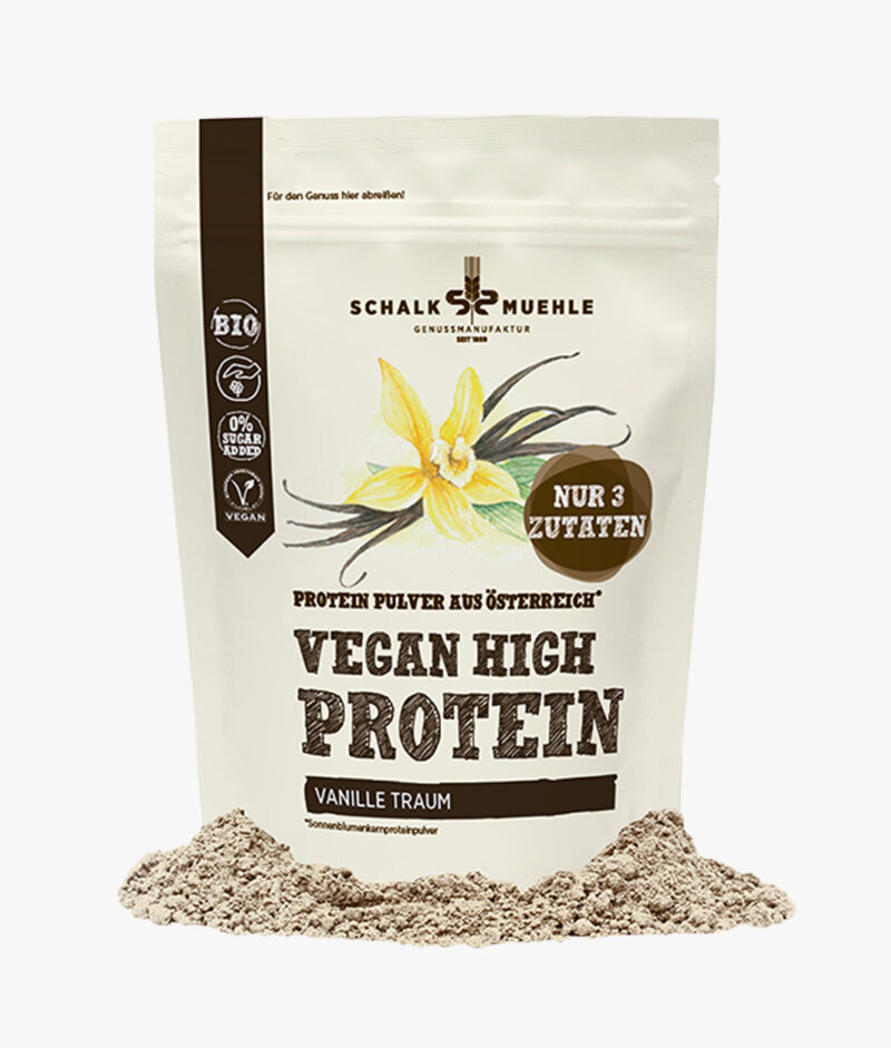 Fein vermahlenes Sonnenblumenkern Protein Pulver vereint mit natürlichem Vanilleextrakt, lässt deine Geschmacksknospen garantiert Freudensprünge veranstalten. Und das mit sagenhaften 48% Eiweißgehalt. Egal, ob direkt nach einem anstrengenden Workout in dein Müsli gerührt oder als schneller Shake für zwischendurch – mit unserem veganen Vanille Protein Mix kommst ganz einfach auf deinen Proteinbedarf. Das Beste? Es schmeckt nicht nur wunderbar als Shake, sondern verfeinert so ziemlich alle herzhaften Gerichte mit feinen Vanillenoten und einer Extraportion Protein.