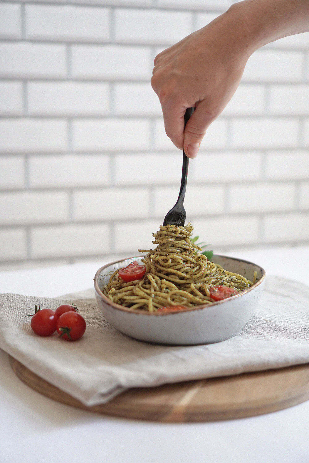 Wie heißt es so schön: Nudeln gehen immer. Absolut richtig, finden wir. Denn kaum ein Gericht ist so schnell gemacht wie Pasta mit Pesto. Und noch dazu so lecker. Wir versprechen, in 10 Minuten bist du fertig und kannst deine Vollkornpasta mit Kürbiskern Pesto genießen – so schnell ist nicht einmal der Lieferdienst. Und solltest du dich mit unserem Kürbiskern Pesto anpatzen, halb so schlimm – eine gute Ausrede mal in der Sonne zu sitzen.